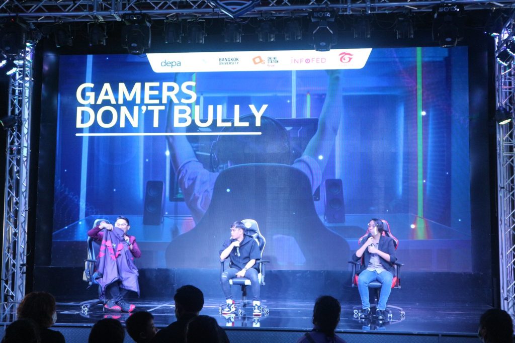 ออนไลน์สเตชชั่น ผู้นำธุรกิจสื่อเกมดิจิทัล และเครือข่าย Influencer อันดับ 1 ของไทย เข้าร่วมกิจกรรม “Gamers Don’t Bully” จัดโดย depa ร่วมกับองค์กรพันธมิตร มหาวิทยาลัยกรุงเทพ, iNFOFED และ Garena เมื่อวันอาทิตย์ที่ 16 สิงหาคม ที่ผ่านมา ณ Thailand E-Sports Arena, The Street โดยกิจกรรมในครั้งนี้ สำนักงานส่งเสริมเศรษฐกิจดิจิทัล (depa) ได้จัดขึ้นเพื่อสนับสนุนการสร้างความตระหนักในการใช้ไซเบอร์ให้มีความปลอดภัยและสร้างสรรค์ เพื่อให้เป็นประโยชน์ต่อการพัฒนาเศรษฐกินและสังคม โดยมีกลุ่มเป้าหมายครอบคลุมถึงเด็กและเยาวชนที่สนใจกีฬา E-Spots และ อาชีพนักพากย์เกม (Game Caster)
