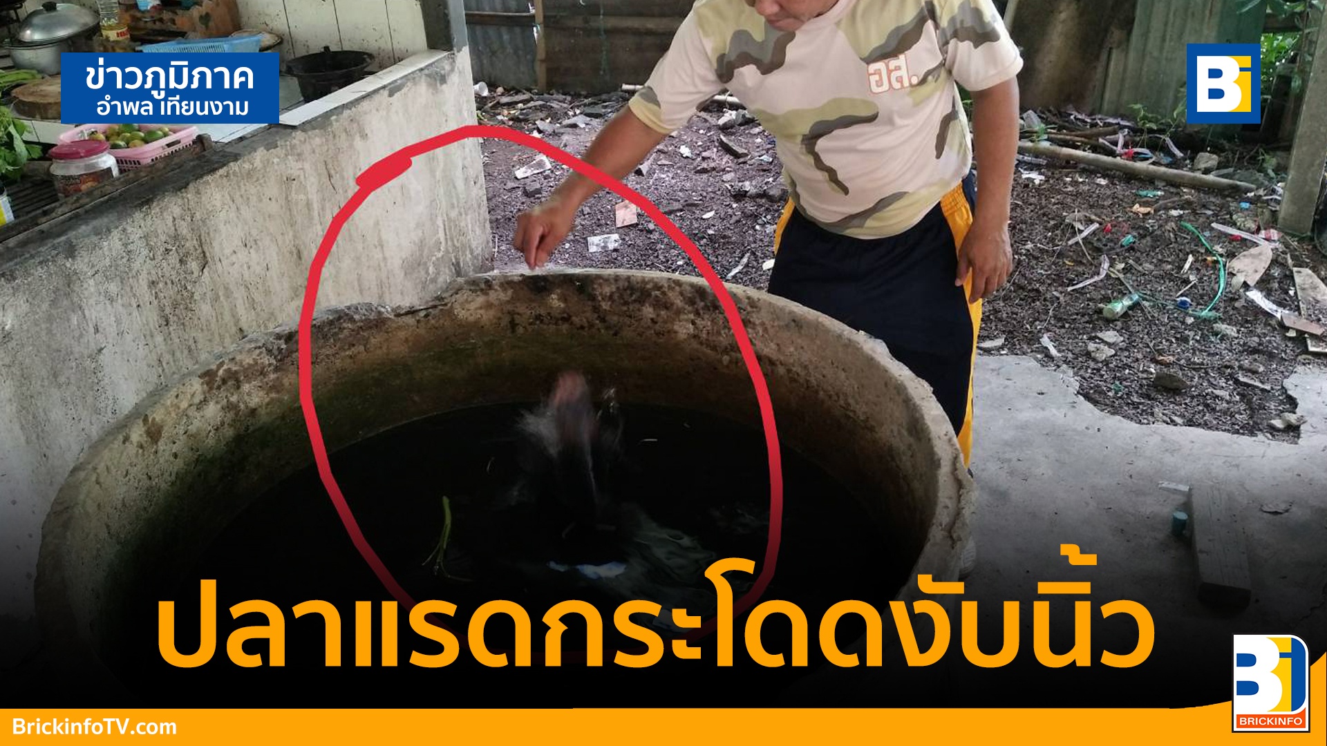 เจ้าหน้าที่ อส. ตกใจสุดขีดถึงกับยืนงงเดินมาสั่งก๋วยเตี๋ยว จู่ ๆ ปลาแรดกระโดดใส่งับนิ้วมือ