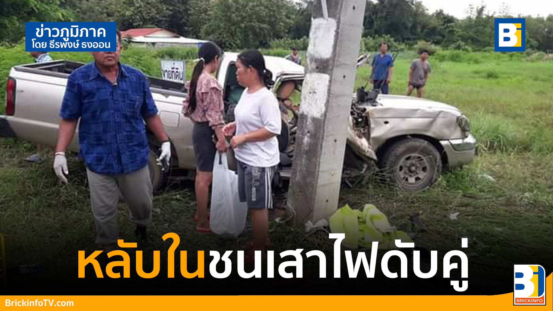 สองแม่ลูกบ้านแม่คำมีฯ ลูกชายคนขับหลับในกลับจากขายเสื้อผ้าตลาดเช้า รถกระบะเสียหลักพุ่งชนเสาไฟฟ้า เสียชีวิตคารถทั้งสองราย