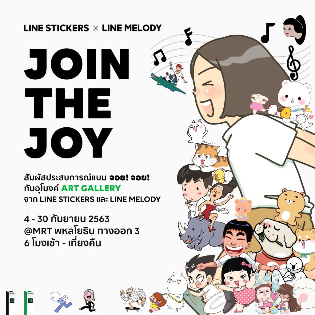 กรุงเทพฯ – 1 กันยายน 2563 – ครั้งแรกในเมืองไทยที่ LINE STICKERS และ LINE MELODY จับมือกันสร้างอุโมงค์ Art Gallery ที่ยาวที่สุด มาพร้อมคอนเซปต์ JOIN THE JOY ให้ทุกคนมาสัมผัสประสบการณ์แบบจอย จอย กันได้เต็มที่ กับแกลเลอรี่ที่เต็มไปด้วยคาแรคเตอร์ยอดนิยมจาก LINE STICKERS ในหลากหลายสไตล์ จัดเต็มทั้งลายเส้นน่ารัก ลายเส้นเก๋ๆ คูลๆ หรือจะสายหวานก็มี แถมงานนี้ยังเอาใจสายถ่ายภาพ กับมุมถ่ายภาพที่ยาวกว่า 100 เมตร จากผลงานของครีเอเตอร์และศิลปินชั้นนำรวมกว่า 180 คน นอกจากจะได้ไปตามหาสติกเกอร์ที่ชอบ ไปเช็คอินได้รูปเก๋ๆ คู่กับคาแรคเตอร์ตัวโปรดแล้ว ยังสามารถสแกน QR Code เพื่อซื้อสติกเกอร์ที่ชื่นชอบได้ทันที หรือถ้าใครเป็นสายฟังเพลง ภายในอุโมงค์ Art Gallery นี้ก็ยังมีเมโลดี้ฮอตฮิตจาก LINE MELODY จากกว่า 30 ศิลปินให้ได้ไปดาวน์โหลดเป็นเสียงรอสาย เสียงเรียกเข้ากันได้อีกด้วย ง่ายๆ แค่นี้ ก็คงต้องบอกว่าไม่ไปไม่ได้แล้ว