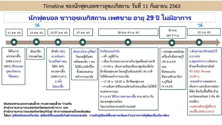 จากกรณีที่กระทรวงสาธารณสุขออกมาเปิดเผยถึงการตรวจพบนักฟุตบอลสโมสรบุรีรัมย์ ยูไนเต็ด ติดเชื้อโควิด-19 จำนวน 1 ราย ก่อนที่ฟุตบอลไทยลีก 2020 นัดที่ 5 ที่จะกลับมาลงแข่งขันวันที่ 12 – 13 กันยายนนี้ โดยหลังจากมีการพบว่านักฟุตบอลคนดังกล่าวติดเชื้อ ทางกระทรวงสาธารณสุขได้มีการสั่งสอบสวนโรค จนพบกลุ่มเสี่ยงที่ใกล้ชิดสัมผัส ซึ่งเป็นนักฟุตบอลร่วมทีมอีก 22 ราย และเจ้าหน้าที่สโมสรอีก 11 ราย โดยเป็นการกักตัวให้ครบ 14 วัน ก่อนจะตรวจหาเชื้ออีกครั้ง