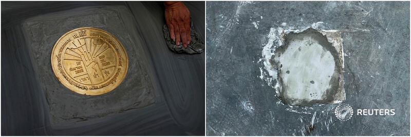 “หมุดคณะราษฎรที่ 2” ถูกรื้อถอนออกจากสนามหลวงแล้ว