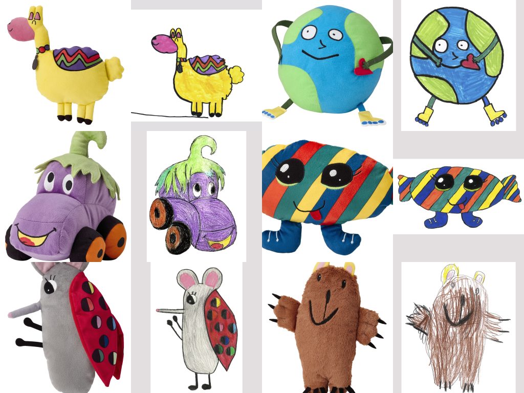 ในปี 2562 เด็กๆ จากทั่วโลกส่งไอเดียสุดมหัศจรรย์วาดตุ๊กตาผ้าเข้ามาประกวดกว่า 71,000 ผลงาน สำหรับ 6 ผลงานที่ได้รับเลือกให้ผลิตเป็นตุ๊กตาผ้าน่ากอดนั้น มีแรงบันดาลใจที่น่ารัก ตัวอย่างเช่น รถมะเขือม่วง ที่หนูน้อยอายัน วัย 8 ขวบ ได้แรงบันดาลใจมาจากเทศกาลฮาโลวีน ให้เจ้ารถมะเขือม่วงคอยเป็นเพื่อนที่จะขับไล่ศัตรูที่น่ากลัวออกไป คุณลูกโลกสวมโรลเลอร์เบลดที่ โย ปอง วัย 12 ขวบ สร้างสรรค์ขึ้นจากความฝันที่อยากจะท่องไปในโลกกว้าง และให้ทุกคนตระหนักถึงความร่วมมือในการช่วยกันดูแลโลกใบนี้ให้คงความสวยงาม เป็นต้น อิเกียให้ความสำคัญในการส่งเสริมสิทธิในการเล่นของเด็ก โดยจะนำรายได้ทั้งหมดจากการจำหน่ายตุ๊กตาผ้า 6 แบบนี้ มอบให้กับมูลนิธิ เพื่อให้เด็กทุกคนมีโอกาสในการเล่น เพิ่มความสุขและพัฒนาการที่ดี