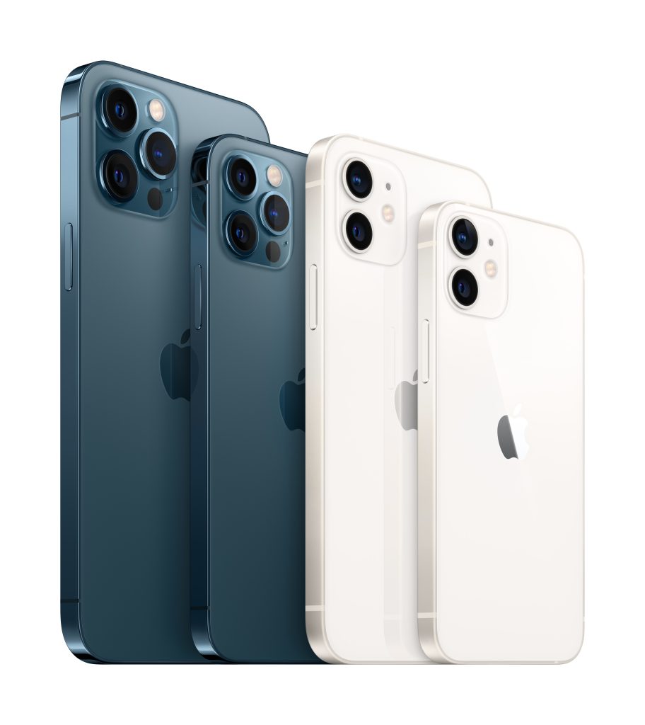 iPhone 12 ขนาด 6.1 นิ้วและ iPhone 12 mini ขนาด 5.4 นิ้ว6 มีดีไซน์ใหม่ที่สวยงามอัดแน่นไปด้วยความสามารถใหม่ๆ อันทรงพลัง และ iPhone 12 mini คือสมาร์ทโฟน 5G ที่เล็กบางและเบาที่สุดในโลกiPhone 12 และ iPhone 12 mini มีวางจำหน่ายในดีไซน์อะลูมิเนียมที่สวยงามถึงห้าสี ได้แก่ สีฟ้า สีเขียว สีดำ สีขาว และ (PRODUCT)RED7และมีจอภาพแบบขอบจรดขอบ Super Retina XDR ที่ทำให้เห็นทุกอย่างได้เต็มตา ตัวเครื่องด้านหน้าแบบ Ceramic Shield ใหม่ที่แข็งแกร่งกว่ากระจกสมาร์ทโฟนใดๆ ที่เคยมีมา8 และมอบคุณสมบัติในการทนน้ำที่ระดับ IP68 ชั้นแนวหน้าของอุตสาหกรรม ชิพ A14 Bionic ใน iPhone 12 Pro Max เดียวกันนี้ ยังอยู่ใน iPhone 12 และ iPhone 12 mini ซึ่งเมื่อมาพร้อมกับระบบกล้องขั้นสูง ก็ทำให้เกิดคุณสมบัติการถ่ายภาพที่ใช้คอมพิวเตอร์ประมวลผลแบบใหม่ที่น่าประทับใจ ไม่ว่าจะเป็น Smart HDR 3 โหมดกลางคืน และ Deep Fusion ในทุกกล้อง วิดีโอคุณภาพดีที่สุดในสมาร์ทโฟนและอื่นๆ อีกมากมายในขณะที่ยังคงมีระยะเวลาการใช้งานแบตเตอรี่ที่ยาวนานทั้งสองรุ่น ยังรองรับวิดีโอ HDR ที่มี Dolby Vision ในระดับ 4K สูงสุดถึง 30 fps และมีระบบกล้องคู่แบบใหม่ที่ทรงพลัง มาพร้อมกล้องอัลตร้าไวด์ที่ขยายกว้างขึ้นและกล้องไวด์ที่มีรูรับแสงขนาด f/1.6 ซึ่งจะเพิ่มคุณภาพของรูปภาพและวิดีโอในที่แสงน้อยถึง 27 เปอร์เซ็นต์
