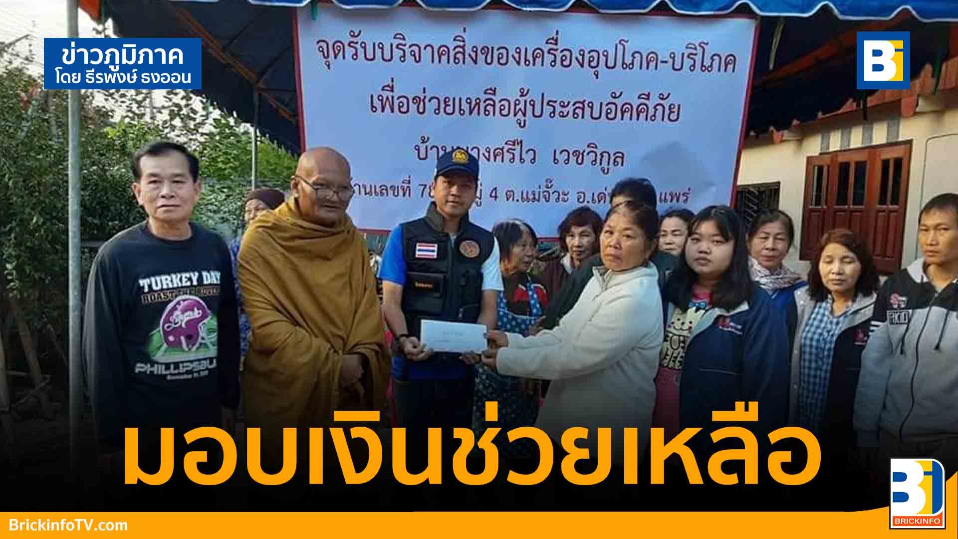 ครูบาพัตร วิสุทธสีโล เกจิดังเมืองแพร่ มอบเงินช่วยเหลือนางน้อย หรือ ศรีไว เวชวิกูล บ้านที่ถูกไฟไหม้