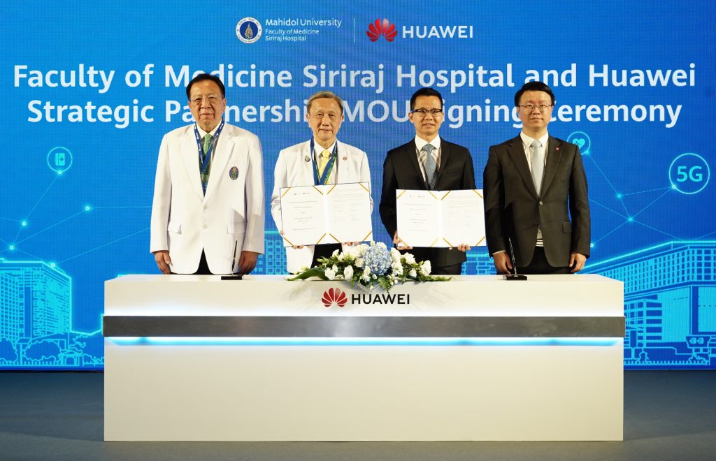 บริษัท หัวเว่ย เทคโนโลยี่ (ประเทศไทย) จำกัด ร่วมกับ คณะแพทยศาสตร์ศิริราชพยาบาล มหาวิทยาลัยมหิดล ลงนามบันทึกความร่วมมือว่าด้วยการพัฒนาบริการอัจฉริยะ 5G ที่ขับเคลื่อนด้วย Cloud และ AI (5G Powered Smart Hospital Enabled with Cloud and AI) สร้างแพลตฟอร์มอัจฉริยะที่ช่วยพัฒนาบริการทางการแพทย์โดยนำนวัตกรรมใหม่ ๆ มาใช้ ตลอดระยะเวลา 5 ปีข้างหน้า ทั้ง 2 ฝ่ายจะใช้ประโยชน์จากเทคโนโลยีดิจิทัลอันทันสมัย เพื่อเพิ่มประสิทธิภาพการบริการและการดำเนินงานทางการแพทย์ อันจะช่วยพัฒนาคุณภาพบริการสาธารณสุขของไทยให้ดียิ่งขึ้น