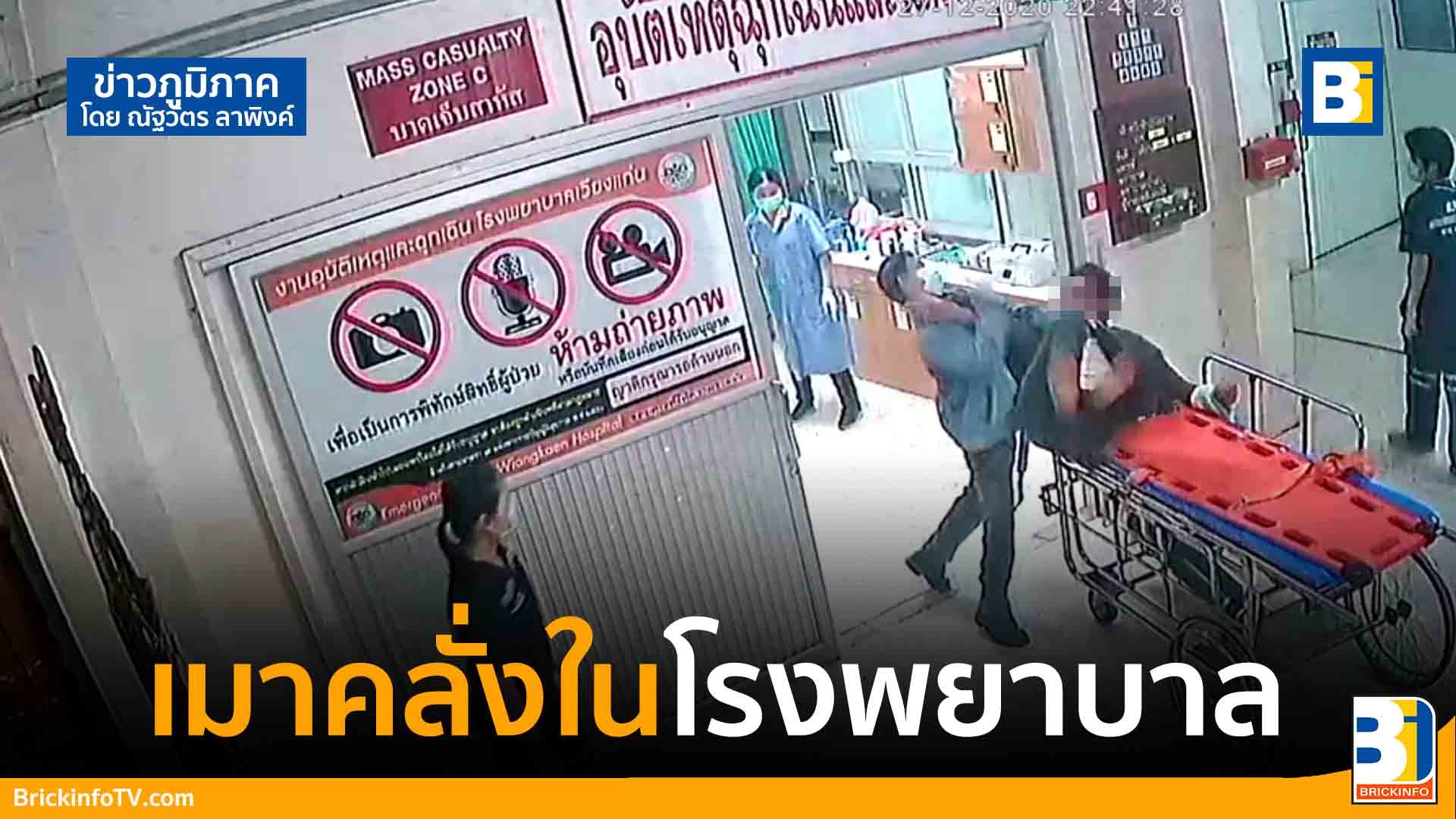 ขณะที่เจ้าหน้าที่กำลังจะทำการรักษานายเฉลิมชัยซึ่งมีอาการมึนเมาไม่ยินยอมขัดขืน และคลุ้มคลั่งใช้เท้าถีบทำร้ายเจ้าหน้าที่และพยาบาล ทำให้เกิดความวุ่นวายในห้องฉุกเฉิน เจ้าหน้าที่และหน่วยกู้ภัยที่เป็นชายที่พยายามจะเข้าไปควบคุมสติของผู้คลุ้มคลั่งเอาไว้ แต่ไม่สามารถควบคุมอาการของชายคลุ้มคลั่งเอาไว้ได้เพราะตัวสูงใหญ่ จากนั้นได้ลุกออกจากเตียงเข้าทำร้ายผู้ที่เข้าไประงับจนทำให้หลายคนบาดเจ็บและอุปกรณ์ภายในห้องฉุกเฉินและหน้าห้องหลายชิ้นเสียหาย โดยทางเจ้าหน้าที่ได้แจ้งเจ้าหน้าที่ตำรวจ สภ.เวียงแก่น ให้เข้าไปจับกุมตัวนายเฉลิมชัยเอาไว้ ซึ่งเหตุการณ์ได้รับการบันทึกด้วยกล้องวงจรปิดได้อย่างชัดเจน หลังสงบสติอารมณ์แล้วนายเฉลิมชัย รับสารภาพว่าได้ดื่มสุราฉลองส่งท้ายปี กับเพื่อนก่อนจะเมาไม่ได้สติแล้วเกิดอุบัติเหตุรถจักรยานยนต์ล้ม และอาละวาดที่โรงพยาบาล ซึ่งหลังจากมีสติแล้วก็ได้ขอโทษกับทางโรงพยาบาลและเจ้าหน้าที่ที่ปฏิบัติหน้าที่ในคืนดังกล่าวแล้ว