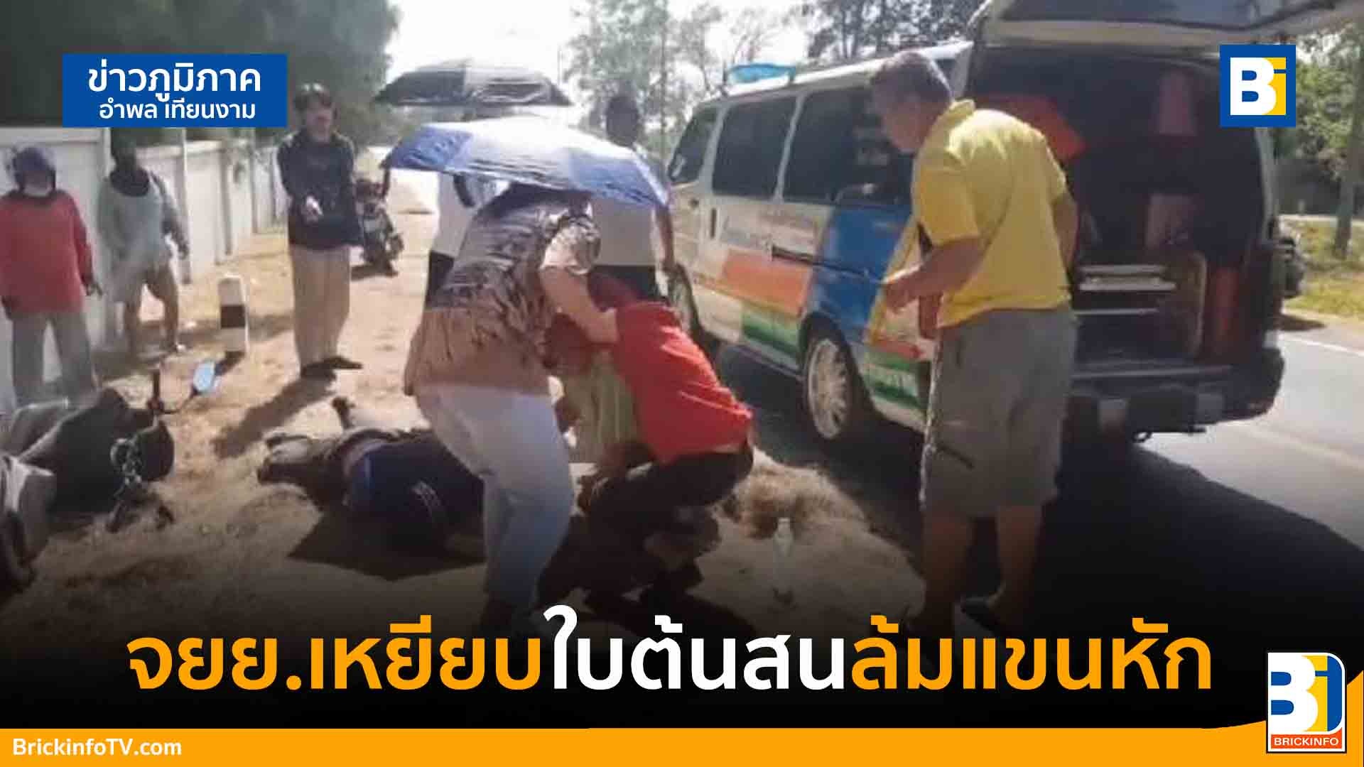 อุบัติเหตุ หนุ่มขี่ จยย.จะไปทำงานเสียหลักล้มชนกำแพงแขนหัก หลังเหยียบใบต้นสน