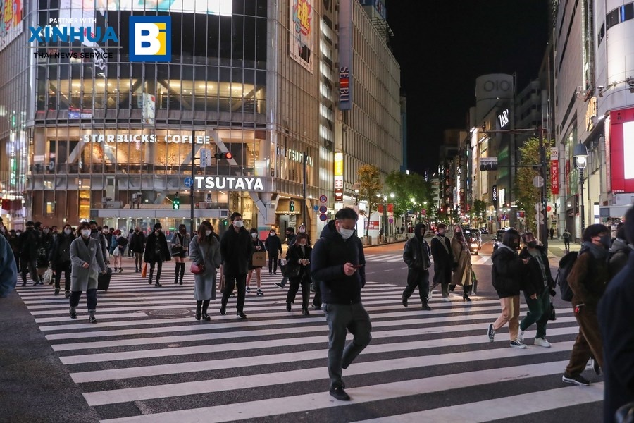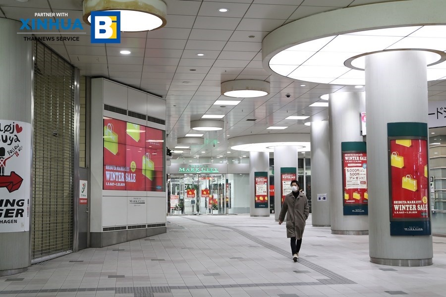 สำนักข่าวซินหัว เผยแพร่ ภาพบรรยากาศกรุง โตเกียว เมืองหลวงของญี่ปุ่น ที่ผู้คนบางตาผิดจากปกติหลังจากมีการประกาศสถานการณ์ฉุกเฉิน