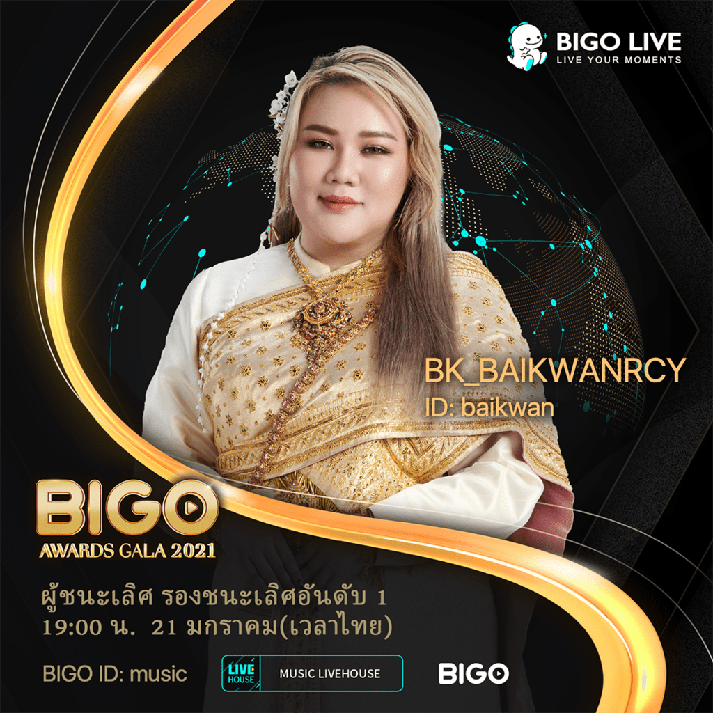 หนึ่งในผู้ชนะคนสำคัญในงานกาล่าปีนี้คือบรอดแคสเตอร์อันดับหนึ่งจาก Bigo Live ประเทศไทย BK????BAIKWAN????RCY หรือเป็นที่รู้จักภายใต้ชื่อ baikwan ด้วยยอดผู้ติดตามกว่า 227,000 คนบน Bigo Live คุณ Baikwanโด่งดังขึ้นเรื่อยๆจากการสานสัมพันธ์ พูดคุย รวมไปจนถึงการแบ่งปันเรื่องราวต่างๆในชีวิตประจำวันของเธอให้ผู้ติดตามของเธอได้ชมอีกด้วย
