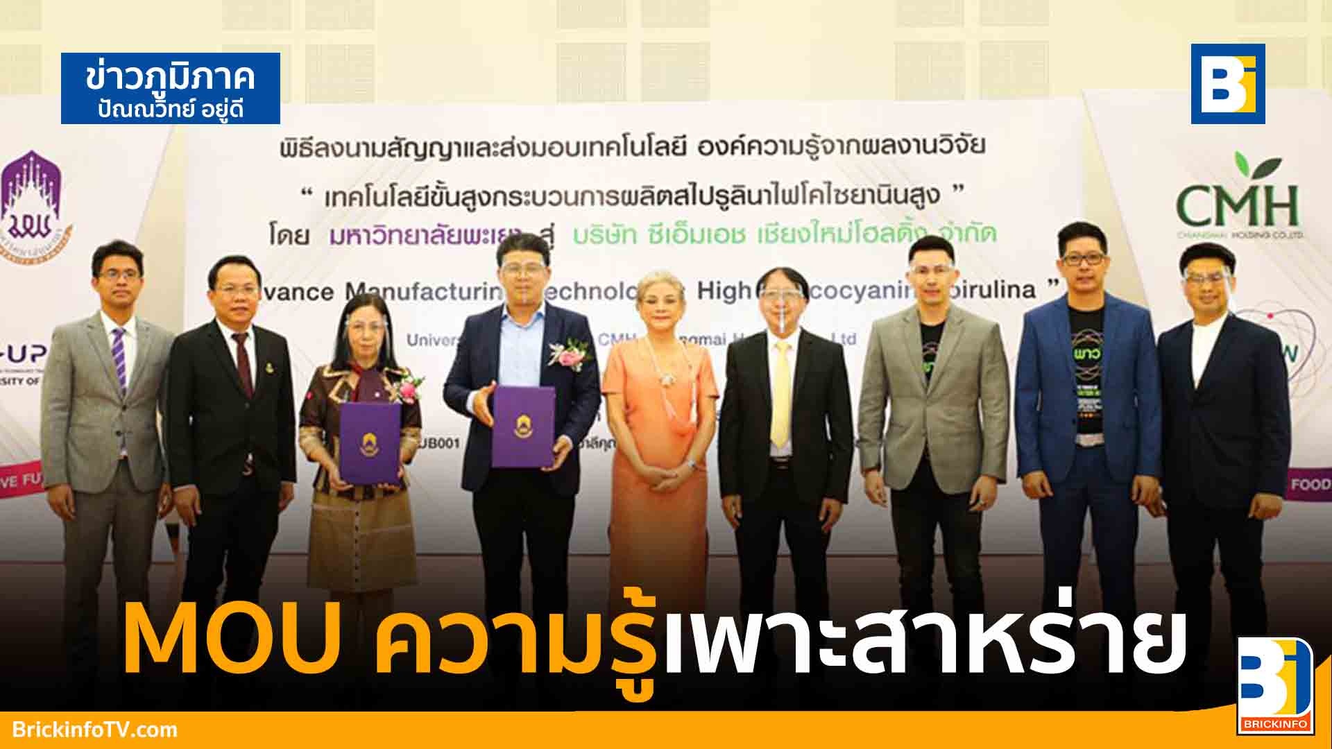 มหาวิทยาลัยพะเยาได้จัดพิธีลงนามสัญญาและส่งมอบเทคโนโลยี องค์ความรู้จากผลงานวิจัย “วิธีการเพาะเลี้ยงสาหร่ายสไปรูลินาที่มีปริมาณไฟโคไซยานินสูง” ระหว่างมหาวิทยาลัยพะเยา กับ บริษัท ซีเอ็มเอช เชียงใหม่ โฮลดิ้ง จำกัด