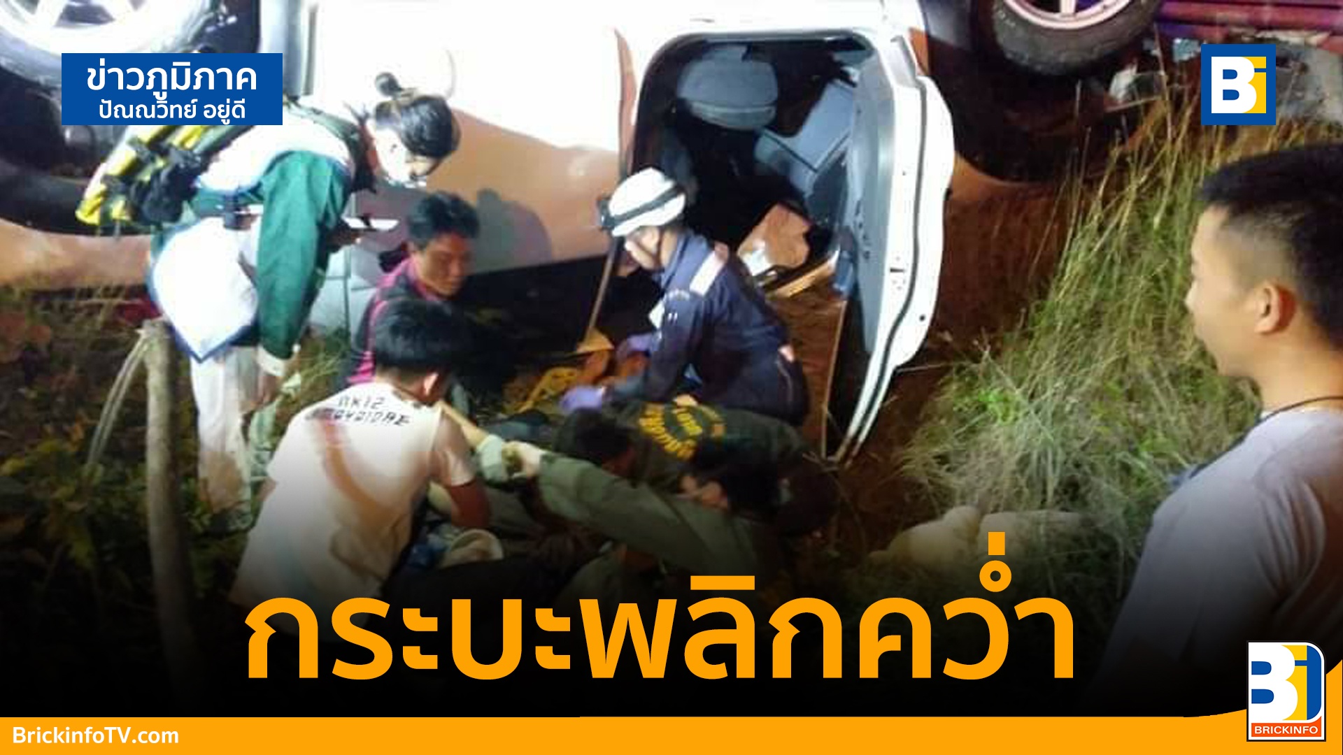 พะเยา กระบะพลิกคว่ำหงายท้อง เกาะกลางถนน