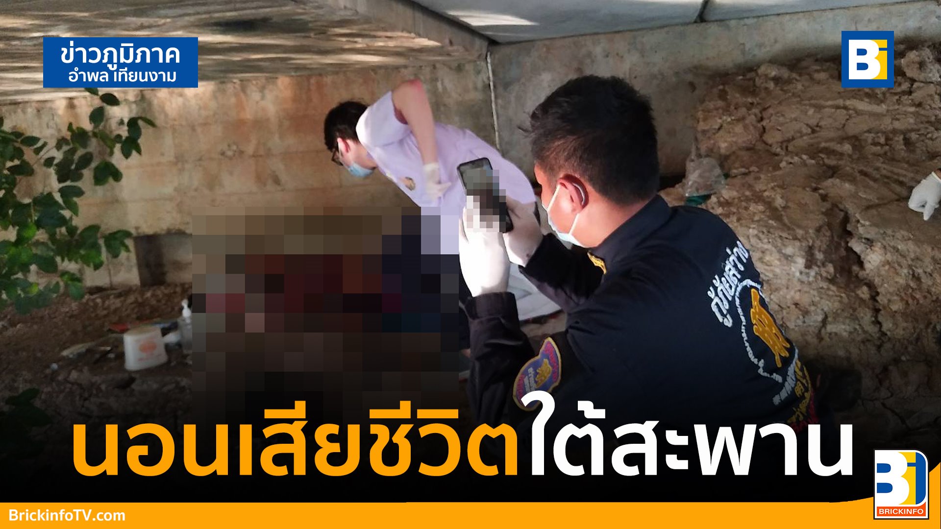 ชาวบ้านโทรแจ้งเจ้าหน้าที่ตำรวจพบศพชายนอนเสียชีวิตไม่ทราบสาเหตุอยู่ใต้สะพาน