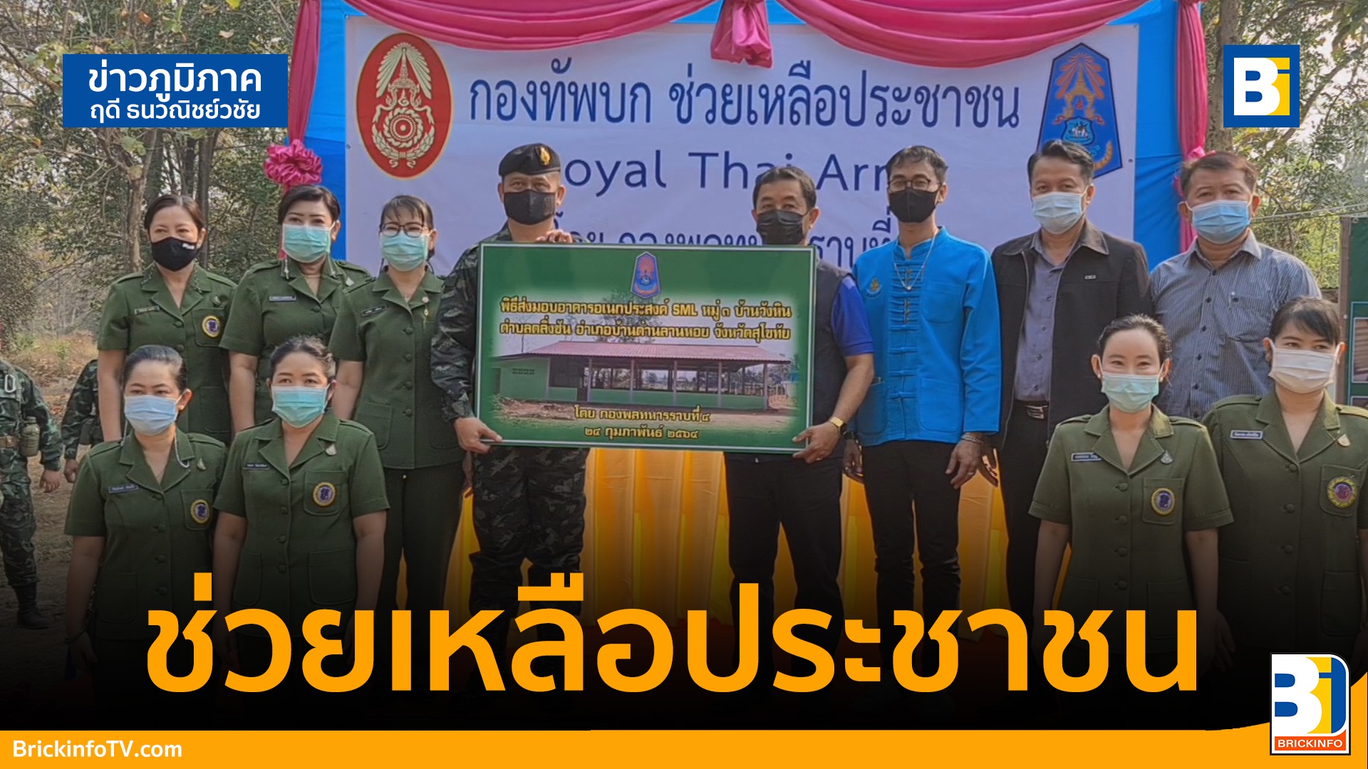 พลตรี อำนาจ ศรีมาก ผู้บัญชาการกองพลทหารราบที่ 4 กองทัพภาคที่ 3 จังหวัดพิษณุโลก เป็นประธาน ส่งมอบอาคารอเนกประสงค์ SML บ้านวังหิน ตำบลตลิ่งชัน อำเภอบ้านด่านลานหอย จังหวัดสุโขทัย ให้แก่ประชาชนชาวบ้านวังหิน โดยกองพลทหารราบที่ 4 จัดกิจกรรมเข้าทำการซ่อมแซมอาคาร ห้องน้ำที่ชำรุด ปรับปรุงหลังคา ทาสีใหม่ อาคารอเนกประสงค์ SML บ้านวังหิน หมู่ที่ 3 บ้านวังหิน ตำบลตลิ่งชัน อำเภอบ้านด่านลานหอย จังหวัดสุโขทัย ที่มีสภาพเก่าชำรุดให้สวยงามอยู่ในสภาพดีพร้อมใช้งานสาธารณประโยชน์ เพื่อประชาชนในชุมชนได้นำไปใช้ประโยชน์ต่อไป