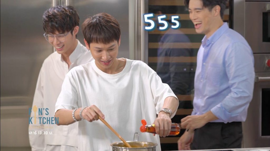 หนุ่มเจ้าบทบาทขวัญใจมหาชน “กัน-อรรถพันธ์ พูลสวัสดิ์” มาขอประลองจับตะหลิวใน “Fin’s Kitchen อาหารจานหล่อ” EP10 กับพี่-น้องคู่ซี้ “เชฟปิง – สุรกิจ เข็มแก้ว” และ “เคน เลิศสิทธิชัย” ในเมนูบำรุงสมอง “ไข่ข้นซอสต้มยำกระพง” แต่จะเกิดอะไรขึ้นเมื่อหนุ่มกันปิ๊งไอเดียซีรีส์ใหม่ได้กลางครัวจนผุด #เชฟที่รัก #พี่กระทะ พร้อมพูดคุยไลฟ์สไตล์แฟชั่นสุดชิคที่ออกภาคพื้นทะเลทีไรต้องเรียกว่า “น้องกันทะเลเดือด” คนกดไลค์รัวปังๆ โดยงานนี้หนุ่มกันยังขอเม้าท์เผาตัวเองกับการแต่งตัวไม่แคร์สภาพอากาศว่า “เพื่อนกันจะบอกกันอยู่อย่างหนึ่งว่า กันแต่งตัวไม่ค่อยดูสภาพอากาศ อย่างเช่นในรายการวันนี้ ซึ่งไม่ได้มีสไตล์ที่ตายตัวมาก คือแต่งไปเรื่อย” ส่วนเมื่อถามถึงที่ผ่านมาการไปถ่ายรูปกับคนอื่น ที่ไม่ใช่คู่จิ้น “ออฟ จุมพล” จะมีปัญหาหรือไม่? กันเผยว่า “ไม่มีนะครับ เพราะกันกับป่าปี๋เราเล่นซีรีส์มากด้วยกันตั้งหลายเรื่องแล้ว เบบี๋(แฟนคลับ)ก็น่ารักด้วย พวกเขาซัพพอร์ตเราทั้งคู่อยู่แล้ว”