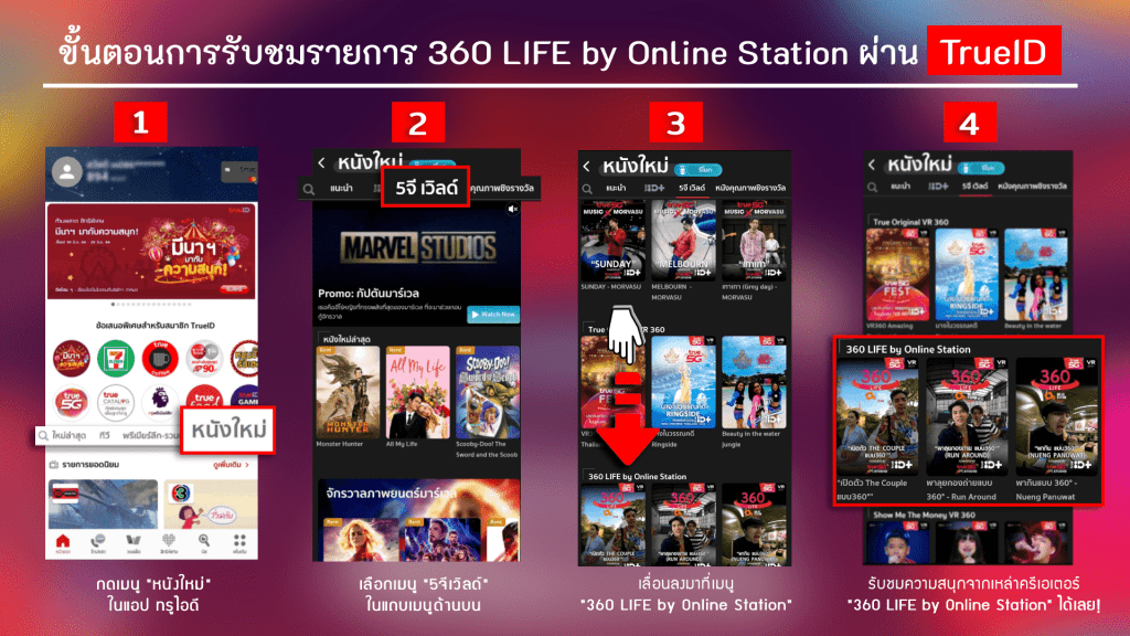 ติดตามชมผลงานของเหล่าครีเอเตอร์ใน “360 LIFE by Online Station” ได้แล้ววันนี้ทางแอป TrueID เลือกเมนู New Movie -> 5G World -> “360 LIFE by Online Station