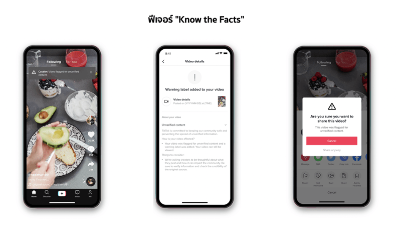 TikTok แพลตฟอร์มวิดีโอสั้นชั้นนำระดับโลก เดินหน้ายกระดับมาตรฐานความปลอดภัยบนแพลตฟอร์ม ล่าสุดเปิดตัวฟีเจอร์ด้านความปลอดภัย ได้แก่ ฟีเจอร์ “Know the Facts”, “Filter All Comments” และ “Rethink” โดยมีเป้าหมายสำคัญเพื่อเป็นส่วนหนึ่งในการสร้างสรรค์สุขภาวะและสังคมดิจิทัลที่ปลอดภัยจาก Fake News หรือข่าวปลอม และ Cyberbullying หรือ การกลั่นแกล้งบนโลกออนไลน์