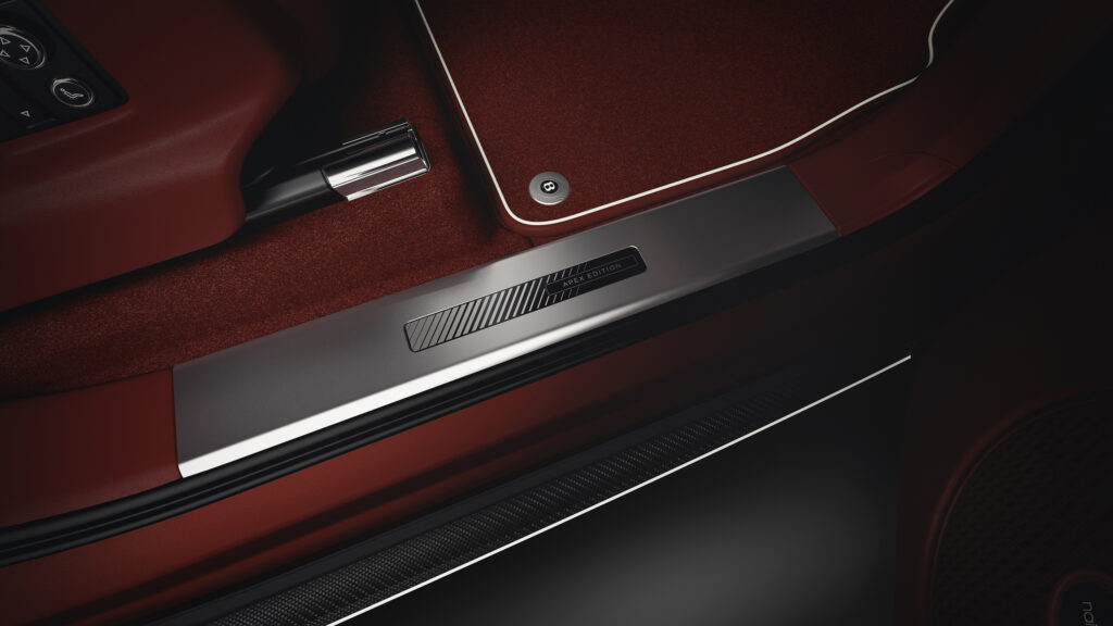 รูปแบบที่สองของ Apex Edition ให้อารมณ์ที่ดุดันและลึกลับยิ่งขึ้นด้วยการตกแต่งภายนอกด้วยเฉดสีเทา Anthracite และแถบสีดำ-เงา พร้อมด้วยลายทางในเฉดสีส้ม Mandarin ที่ให้ความรู้สึกคอนทราสต์ ภายในห้องโดยสารมีการใช้หนังเฉดสีส้ม Mandarin เป็นหลัก และหนังเฉดสีดำ Beluga พร้อมการตกแต่งด้วยวีเนียร์แบบซาตินคาร์บอนไฟเบอร์