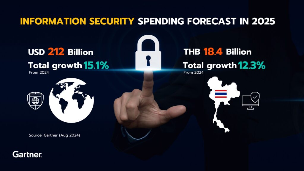 สำหรับประเทศไทย การ์ทเนอร์คาดว่าในปี 2568 ยอดใช้จ่ายด้านความปลอดภัยข้อมูลของผู้ใช้ปลายทางจะมีมูลค่ารวมอยู่ที่ 18,400 ล้านบาท เพิ่มขึ้น 12.3% จากปี 2567 ที่คาดว่าจะมีมูลค่าการใช้จ่ายรวมที่ 16,400 ล้านบาท