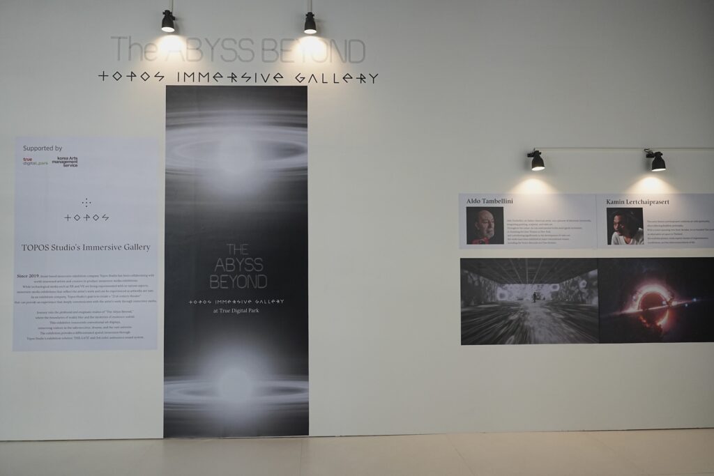 ด้าน Daegyeom Heo, CEO of Topos Studio กล่าวว่า ” Topos Studio เราเป็นสตูดิโอจากประเทศเกาหลีใต้ที่เชี่ยวชาญเรื่องการสร้างสรรค์เทคโนโลยีดิจิทัลที่ล้ำสมัย สำหรับนิทรรศการ “The Abyss Beyond” เราใช้เทคโนโลยีดิจิทัลในการนำเสนองานศิลปะ ที่พร้อมจะนำทุกท่านเข้าสู่โลกแห่งจินตนาการของมนุษย์ที่ไร้ขอบเขต เป็นอีกข้อพิสูจน์ถึงพลังของสื่อ ที่สามารถสร้างแรงบันดาลใจ ความท้าทาย และขยายความเข้าใจของเราเกี่ยวกับโลก และตัวตนของเราเอง”