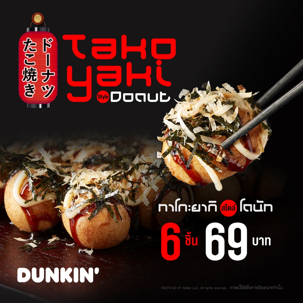 “ดังกิ้น” แบรนด์โดนัทชั้นนำระดับโลก ต้นตำรับโดนัทรสเลิศ เอาใจแฟนพันธุ์แท้ นักชิมแดนอาทิตย์อุทัย จัดแคมเปญ “Takoyaki Style Donut” ส่งความอร่อยสไตล์ญี่ปุ่นที่ไม่ต้องบินไกลถึงญี่ปุ่นก็ฟินได้ ด้วยทาโกะยากิ สไตล์ โดนัท อร่อยฟิน เคี้ยวหนึบ เต็มรสชาติในทุกคำ รังสรรค์ด้วยแป้งโดนัทสูตรเฉพาะ ราดด้วยซอสต้นตำหรับสูตรเข้มข้น โรยด้วยสาหร่าย และปลาคัทสึโอะแห้ง เป็นรสชาติที่ผสมผสานกันอย่างลงตัว ในราคาเพียงกล่องละ 69 บาท เท่านั้น